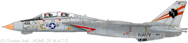 F-14 Tomcat Squadrons: VF-74 | VF-84 | VF-101 | VF-102 | VF-103 | VF-111 | VF-114 | VF-124 | VF-142 | VF-143 | VF-154 VF-191 | VF-194 | VF-201 | VF-202 | VF-211 | VF-213 | VF-301 | VF-302 | VX-4 | VX-9 NAWC | NATC | NFWS | NASA | Iranian Air Force | Carrier Airwings | Squadron Awards F-14 Tomcat: Other Topics: Start Page Foreword FAQ Updates Copyright © 1997-2001 by Torsten Anft |