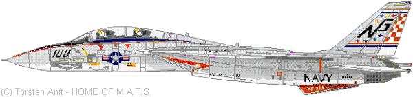 F-14 Tomcat Squadrons: VF-74 | VF-84 | VF-101 | VF-102 | VF-103 | VF-111 | VF-114 | VF-124 | VF-142 | VF-143 | VF-154 VF-191 | VF-194 | VF-201 | VF-202 | VF-211 | VF-213 | VF-301 | VF-302 | VX-4 | VX-9 NAWC | NATC | NFWS | NASA | Iranian Air Force | Carrier Airwings | Squadron Awards F-14 Tomcat: Other Topics: Start Page Foreword FAQ Updates Copyright © 1997-2001 by Torsten Anft |