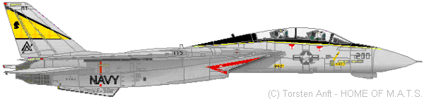 F-14 Tomcat Squadrons: VF-74 | VF-84 | VF-101 | VF-102 | VF-103 | VF-111 | VF-114 | VF-124 | VF-142 | VF-143 | VF-154 VF-191 | VF-194 | VF-201 | VF-202 | VF-211 | VF-213 | VF-301 | VF-302 | VX-4 | VX-9 NAWC | NATC | NFWS | NASA | Iranian Air Force | Carrier Airwings | Squadron Awards F-14 Tomcat: Other Topics: Start Page Foreword FAQ Updates Copyright © 1997-2001 by Torsten Anft |