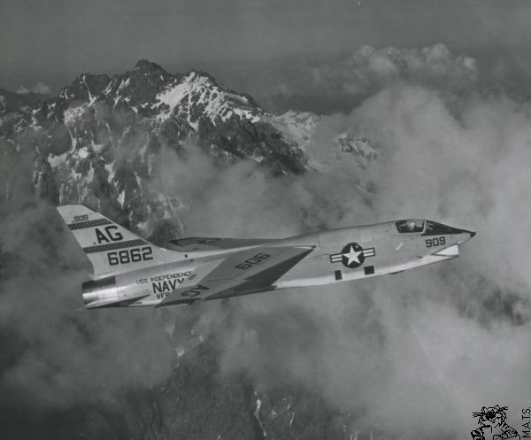 A VFP-62 RF-8A Crusader above the Alps in 1962.