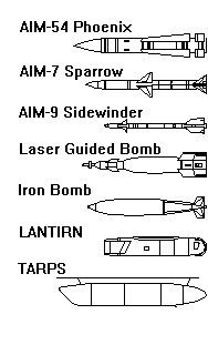 Vulcan cannon firing 6000 rounds a minute.The F-14 with its TARPS reconnaissance pod is the only aircraft in the Navy to fly photo missions and just recently the TARPS was modified to digitally transmit gathered images in near real-time to the fleet commanders. An invaluable instrument in any war scenario. The air-to-ground Capability was long time not trained in the F-14 community. Even though the original 1970s design included air-to-ground capability, only in recent years the F-14 became again a fighter-bomber. Not only iron bombs and cluster bombs can be delivered, but also latest laser-guided ammunition. Doing this, the F-14 can also identify and mark its own targets using the LANTIRN (low altitude navigation and targeting infra-red, night) pod. So even after more than 25 years in service with the U.S. Navy the F-14 Tomcat is - even though an aging - a most capable fighter aircraft. ![]() | |||