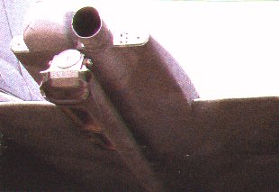 | Left : Externally, the F-14D can be distinguished from other variants by the General Electric / Martin -Marietta twin side-by-side sensor pods undernose, wich house the Northrop AN/AXX-1 TCS to starboard and the General Electric Aerospace Electronic System AN/AAS infra-red search and track sensor to port (seen here with a solid cover, perhaps indicating that the equipment is not fitted). These were ordered in 1993 for installation in 1996. Right : The boat-tail of an F-14D features the high-band AN/ALQ-165 RHAWS antenna and the fuel dump pipe. Bays for tandem chaff/flare dispensers are located just under the boat-tail. |