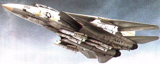 With this typical load all F-14s have greater versatily than any other fighter. Many Tomcats also carry a TCS (Television Camera Set) to permit the crew to make positive identification of targets beyond normal visual range 1x20mm M61A1 six-barrel cannon 4xAIM-54C Phoenix 2xAIM-7M Sparrow 2xAIM-9M Sidewinder |