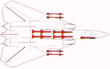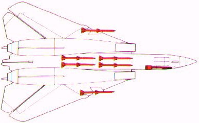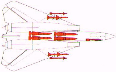 The primary role of the Tomcat is to kill at a distance, but there will always be intruders who pierce the outer screen and must therefore be engaged by Tomcat at close range. In such a dogfight mode the F-14 has an MSP (Mach Sweep Programmer) wich automatically varies the wing sweep angle troughout the combat to extract maximum performance from the aircraft. 1x20mm M61A1 six-barrel cannon 4xAIM-7M Sparrow 4xAIM-9M Sidewinder |